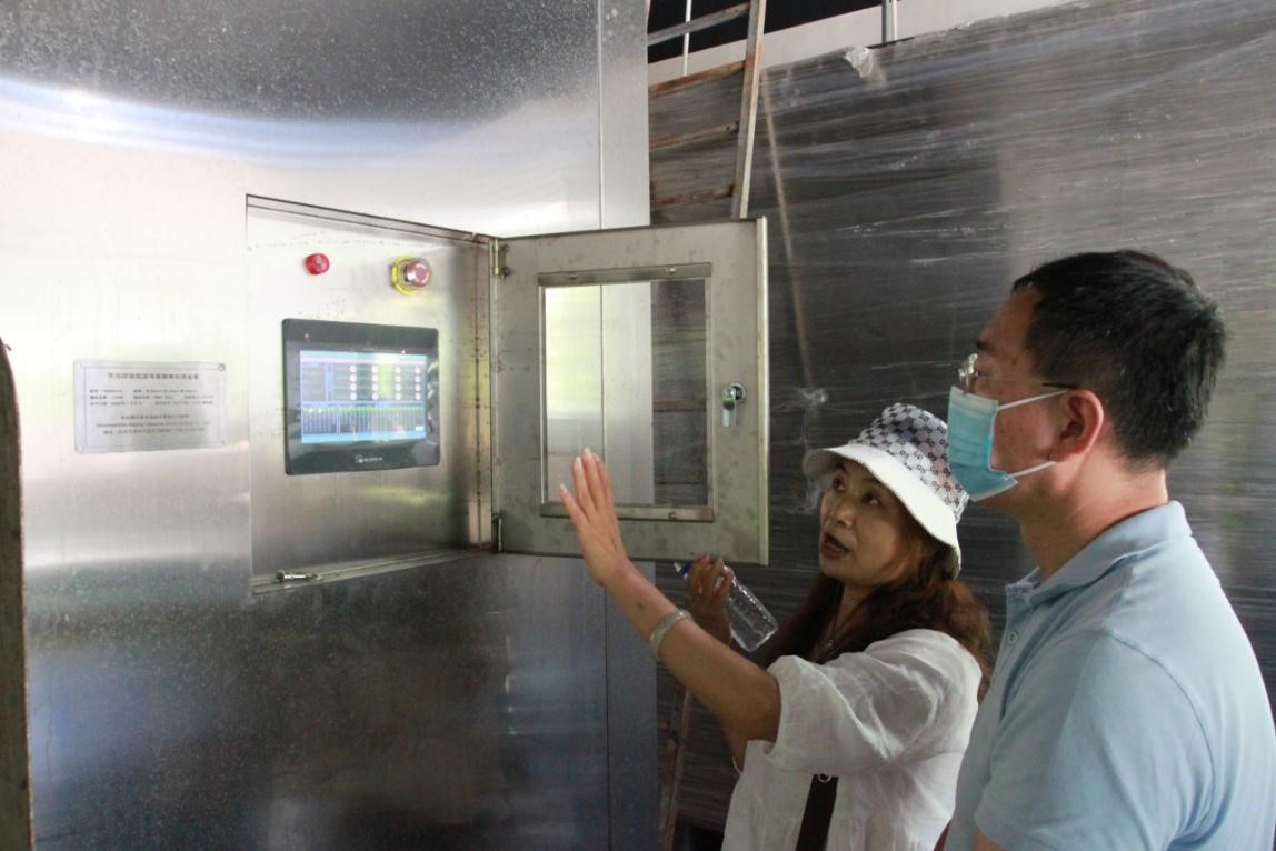 液可清公司常务副总经理王毓女士向肖总一行讲解了从分拣进料、到设备内分层反应、再到磁化分离与烟气净化、最终到产生物收集存储的整套工艺流程。液可清公司董事长李欣先生陪同参观并对项目核心工艺及实际运行情况进行了讲解说明。据悉目前此技术设备垃圾减量化可达95%以上,系统采用闭环工艺,排放指标各项均优于国家标准,整个过程无害化率达100%,同时产生的灰渣、烟焦油全部具有经济效益。处理设备的三大核心技术均拥有国家专利,设备运行能源消耗极低、操作简单、条件卫生安全,从根本上解决了乡镇垃圾收转运处理这个棘手的问题,环保上符合各项指标。