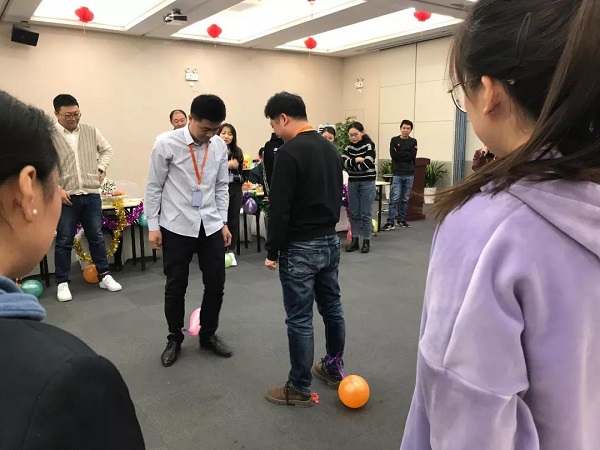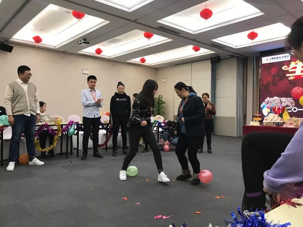 会场悬挂拉花,并以五彩斑斓的气球作为点缀,除此之外,工会同事还准备了多种水果、饮料、生日蛋糕以及小礼品送给各位寿星与新人。别具一格的布置创意增加了喜庆的气氛,便于寿星们和新人们交流感情以及完成游戏。